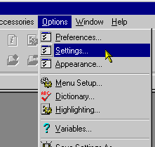 1. In der Menüleiste "Options" auswählen und auf "Settings ..." klicken