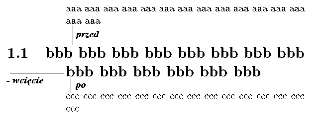 Na rysunku widzimy tytuł zdefiniowany poleceniem mającym ujemną wartość parametru wcięcie